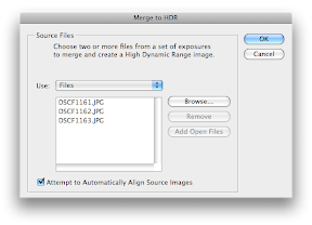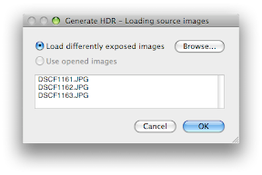 Select your range of exposed photos in Bridge (Adobe CS3) and drag all files to be used for the HDR image into the Photoshop icon in your dock (Mac). The Camera Raw box should appear. Using the dialog box: