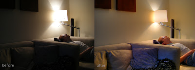 Here is the very first HDR I made with my little Fuji FinePix, proof that even the lowliest of cameras can benefit from this technique. The image on the left ("Before") is the image as would have been taken regularly. The image on the right ("After") is the HDR version of that image. Notice how you can see the detail within the lamp and in the foreground.